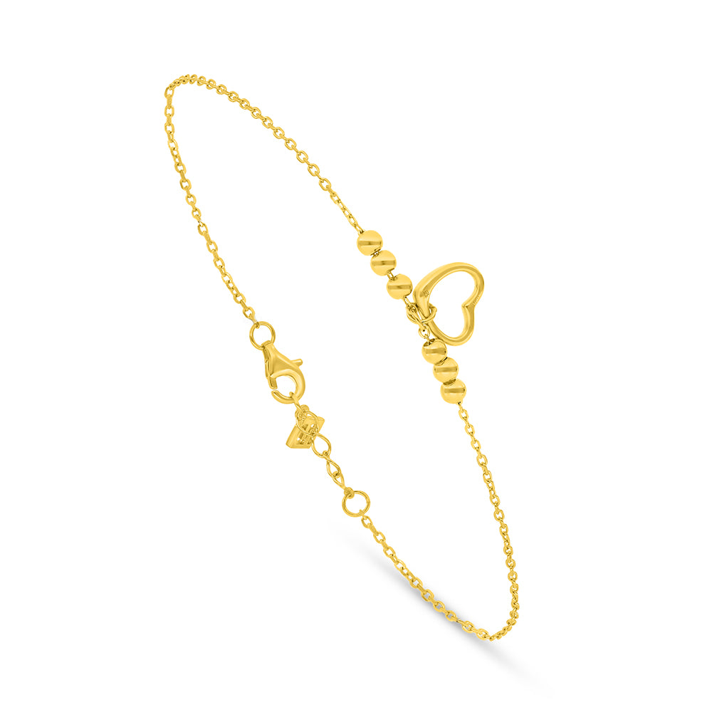 Total Weight: 1.7g استعدّي للتألّق عند ارتداء هذه الأسوِرة الرائعة من فايندرا، المصنوعة من الفضة الخالصة عيار 925 والمطلية بالذهبي. تتكوّن من شكل قلب مفرغ مائل أنيق تحيط به خرزات فضية موزعة بطريقة أنيقة، لتظهر بشكل جذّاب يضيء معصمك ويخلّد أجمل لحظاتك. سواء ارتديتها بشكل يومي أو في مناسباتك الخاصة، ستكون قطعتك المثالية. احصلي عليها الآن!