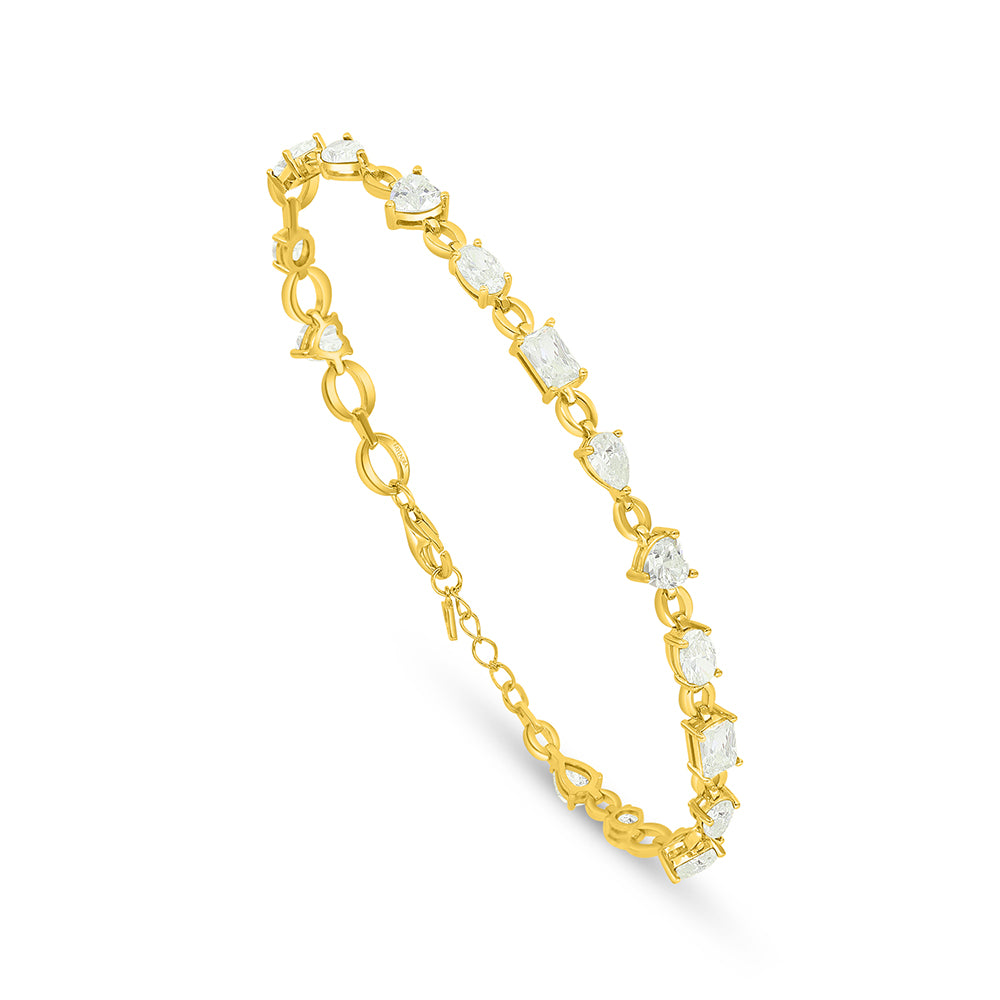 Total Weight: 9.4g أبرزي رقيّك مع أسوِرة فايندرا التي تتّسم بالبساطة الراقية ضمن مجموعة مجوهراتكِ. تأتي هذه الأسوِرة بتصميم مصنوع من الفضة الخالصة عيار 925، مطلية بالذهب لتزيد من إشراقها، ومزيّنة بصفّ من أحجار الزركون الأصفر بلمعة ماسية، مقطوعة بأشكال باجيت ودمعة وأوفال، ومتراصّة بدقة متناهية لتمنحكِ بريقًا ساحرًا. ارتديها في كل الأوقات وانتقيها الآن قبل أن تنفد!