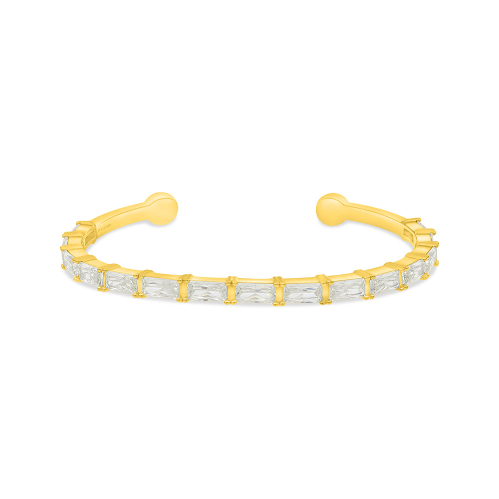 Total Weight: 10.4g عبّري عن جمالك مع أسوِرة فايندرا التي تتّسم بالبساطة ضمن مجموعة مجوهراتكِ. تأتي هذه الأسوِرة بتصميم مصنوع من الفضة الخالصة، مطلية بالذهبي لتزيد من اشراقتك، ومزيّنة بصفّ من أحجار الزركون الأصفر بلمعة ماسية ، مقطوعة على شكل قصة باجيت ومتراصّة بدقة متناهية لتمنحكِ مزيدًا من اللمعان. ارتديها في كل الأوقات وأضيفيها إلى سلتك الآن!