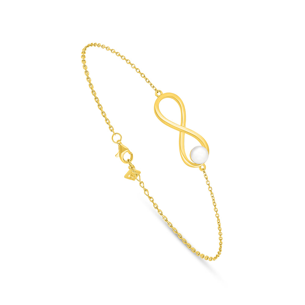 تجسيدٌ للعذوبة الراقية تقدّمه لكِ فايندرا مع هذه الأسورة المصنوعة من الفضة الخالصة عيار 925، والمطلية بطبقة من اللون الذهبي الراقي. يُجسّد تصميمها علامة اللانهائية الشهيرة، رمز الاستمرارية والحب اللامحدود للحياة. تتألق الأسورة أيضًا بلؤلؤة طبيعية فاتنة عند أحد طرفيها، لتمنحكِ لمسة من الأناقة الهادئة يصعب الاستغناء عنها. اقتنيها الآن وتمتّعي بإطلالة لا مثيل لها!