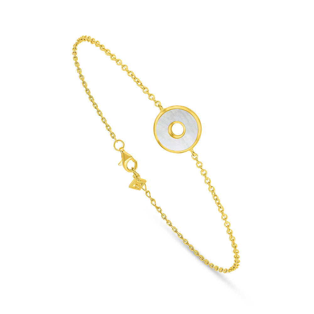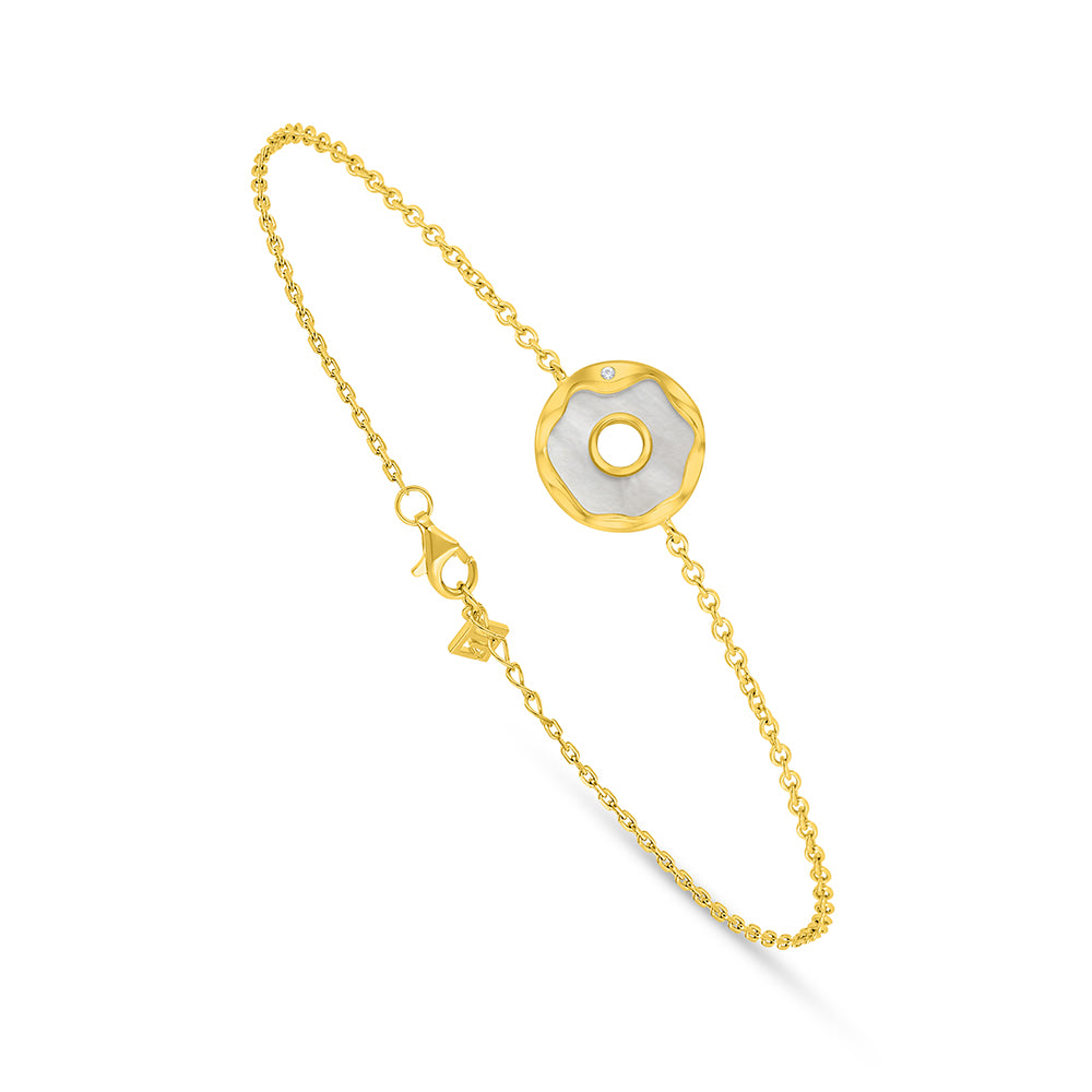 اسورة من الفضة الخالصة عيار 925 مطلي ذهبي صدف ابيض و فص ابيض
