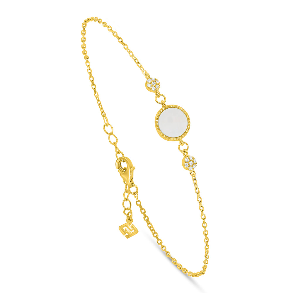 اسورة من الفضة الخالصة عيار 925 مطلية ذهبي مرصعة صدف ابيض و فص ابيض