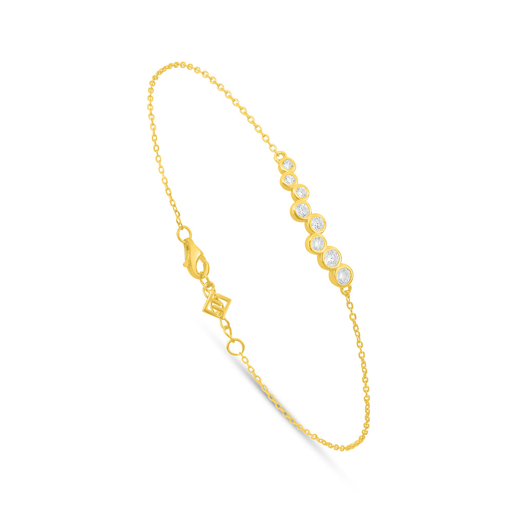 يتجسد مفهوم البساطة في تصميم هذا السوار من فايندرا، المصنوع من الفضة الخالصة عيار 925 والمطلي بطبقة من اللون الذهبي الخلاب. يزدان السوار بدوائر تتوسطها أحجار زركون بيضاء فائقة البهاء، ويمنحه تصميمه الأنثوي البسيط لمسةً مثالية لإطلالتك. نسّقيه مع القطع المطابقة من مجموعتنا أو قدّميه هديةً لشخصٍ عزيز. أضيفيه إلى سلتك الآن!