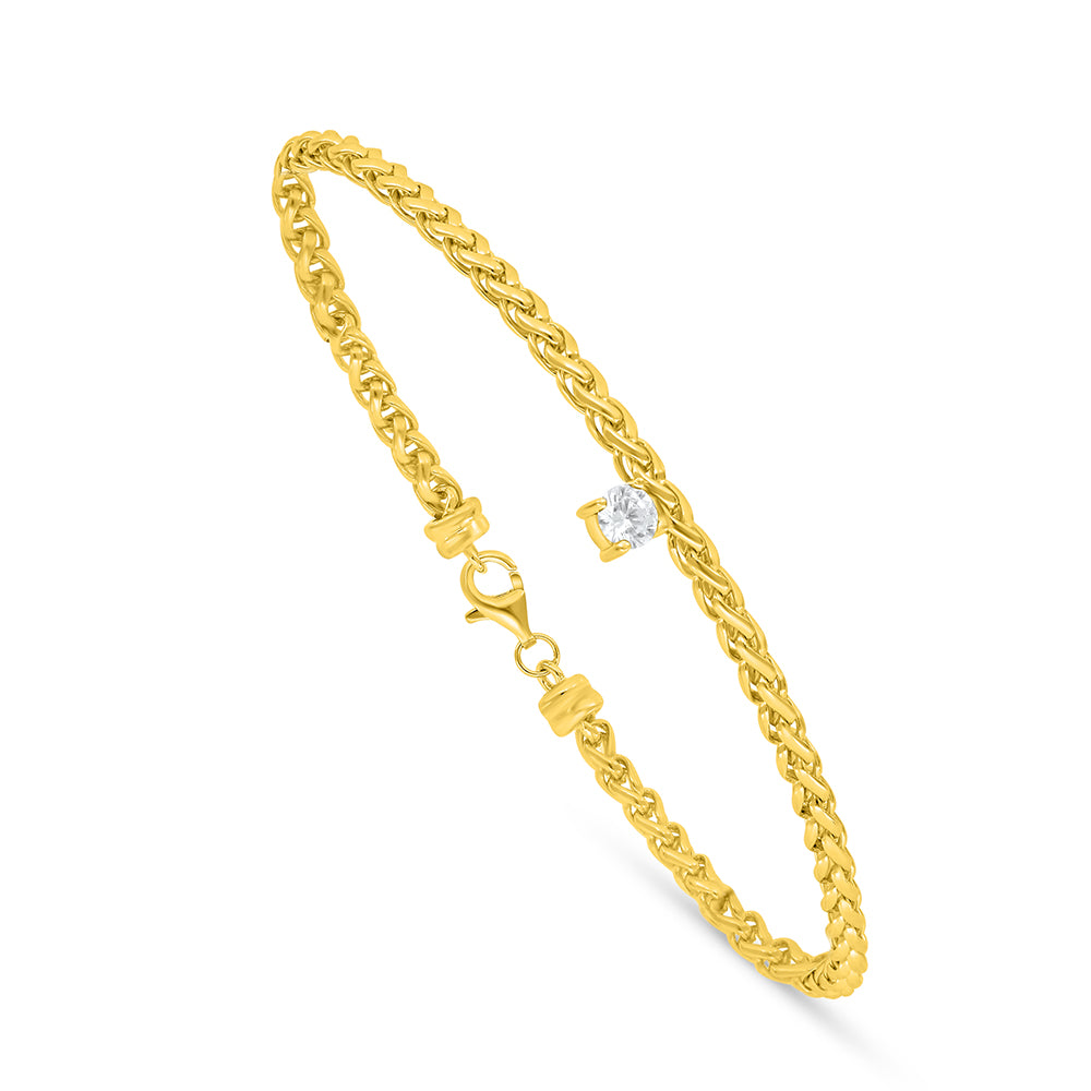 اسورة من الفضة الخالصة عيار 925 مطلية ذهبي مرصعة فص ابيض