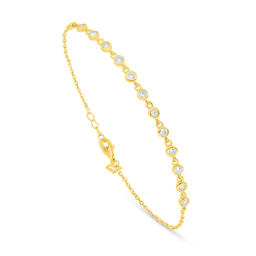 Total Weight: 3.2g استعدّي لجاذبية لا مثيل لها مع هذه الأسوِرة الأنيقة من فايندرا، المصنوعة من الفضة الخالصة عيار 925 والمطلية بالذهبي المشرق. تتزيّن بجواهر من الزركون الأبيض الذي يضيء معصمك ويعكس الضوء مع كل حركة ، بقَصّة بريليانت رقيقة، تتعاقب معها حلقات فضية أنيقة لتُضيء معصمك وتُخلّد أجمل لحظاتك بلمسة من الأنوثة الناعمة. مناسبة لإطلالة متجددة ومتناسقة بإيقاع جذّاب، سواء ارتديتها يوميًا أو خصّصتها لمناسباتك الخاصة. احصلي عليها الآن!