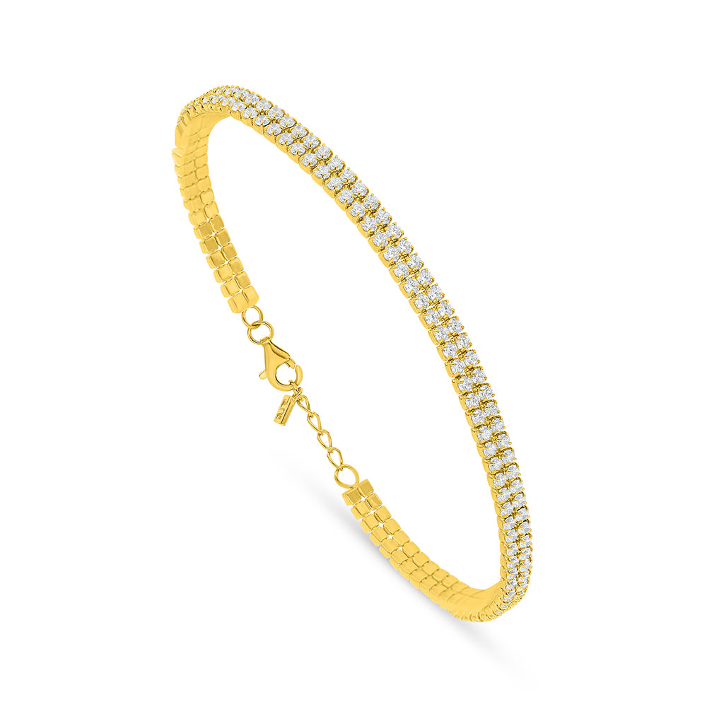 اسورة من الفضة الخالصة عيار 925 مطلية ذهبي مرصعة فص ابيض