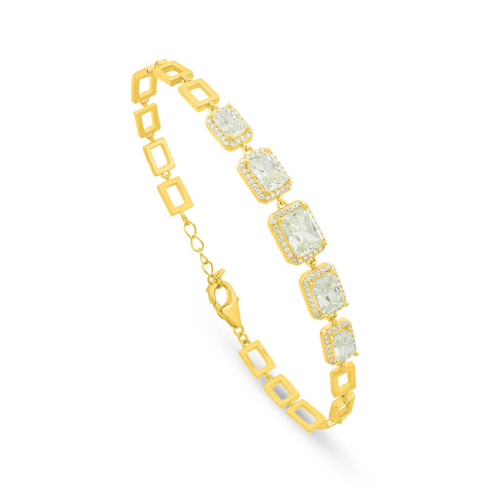 اسورة من الفضة الخالصة عيار 925 مطلية ذهبي مرصعة بالزركون الكناري الالماسي و فص ابيض