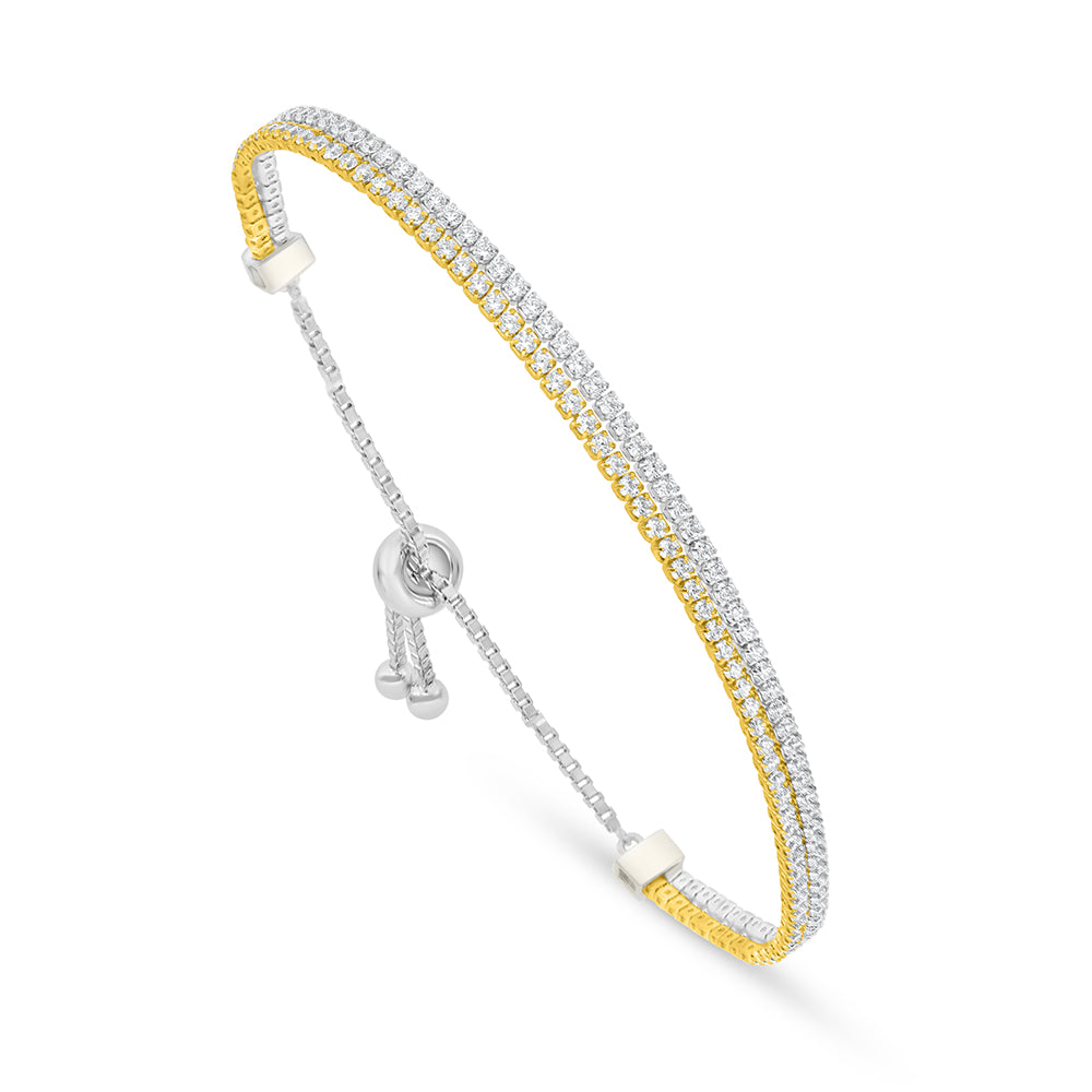 Total Weight: 7.4g تألّقي بسحرٍ لا يُقاوم مع سوار فايندرا المصنوع من الفضة الخالصة عيار 925 والمطلي بالروديوم والذهب اللامع، يتزيّن بصفّين متلألئين من أحجار الزركون الأبيض تمتدان بانسيابية على كامل التصميم ليمنح معصمكِ بريقًا راقيًا وأناقة لافتة. قطعة تجمع بين الجمال العملي والفخامة الهادئة. فتألّقي بها اليوم!