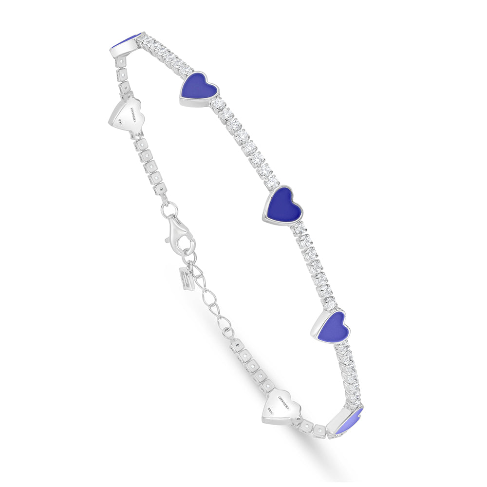 اسورة من الفضة الخالصة عيار 925 مطلية روديوم مرصعة انميل ازرق و فص ابيض
