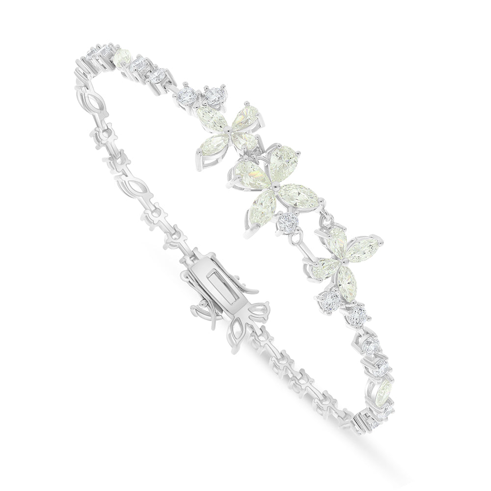 اسورة من الفضة الخالصة عيار 925 مطلية روديوم مرصعة بالزركون الكناري الالماسي و فص ابيض