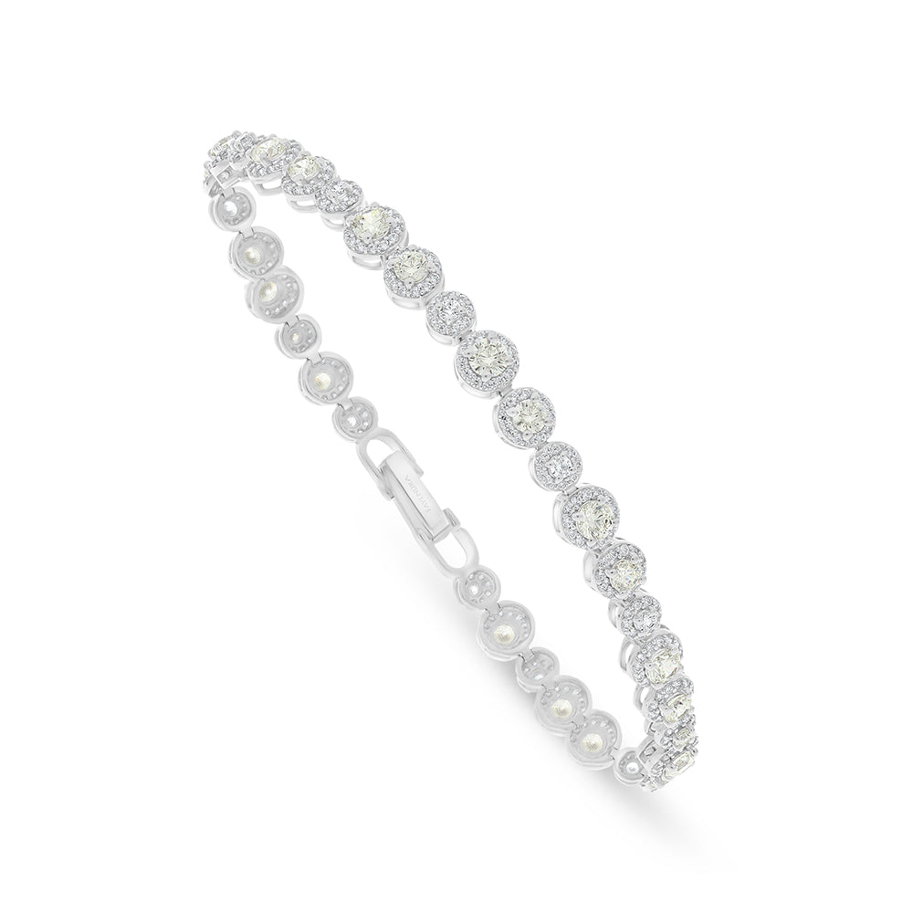 Total Weight: 11.3g زيّني إطلالتك بسوارٍ أنيقٍ من فايندرا، مصنوعٍ من الفضة الخالصة عيار 925 ومطليٍّ بالروديوم ليحافظ على لمعانه الساحر. يتكوّن تصميمه من حلقاتٍ متّصلة مرصّعةٍ بأحجار الزركون الأبيض والكناري الألماسي اللامعة تغطي السوار بالكامل بإتقانٍ وأناقة، لتمنح معصمك لمسةً من الفخامة والرقيّ العملي في آنٍ واحد. اجعليه إكمالاً لإطلالتك المميزة الآن!
