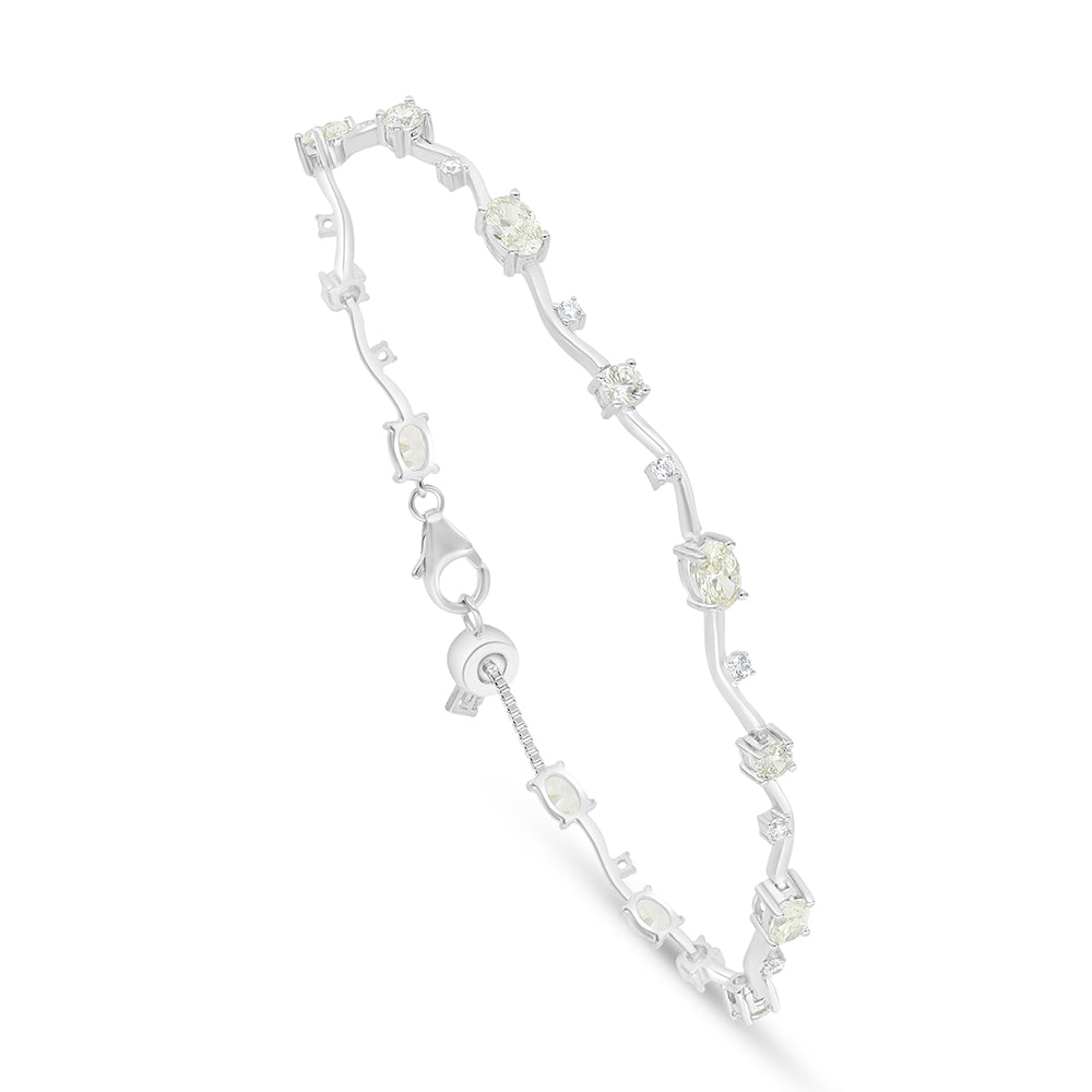 اسورة من الفضة الخالصة عيار 925 مطلية روديوم مرصعة بالزركون الكناري الالماسي و فص ابيض