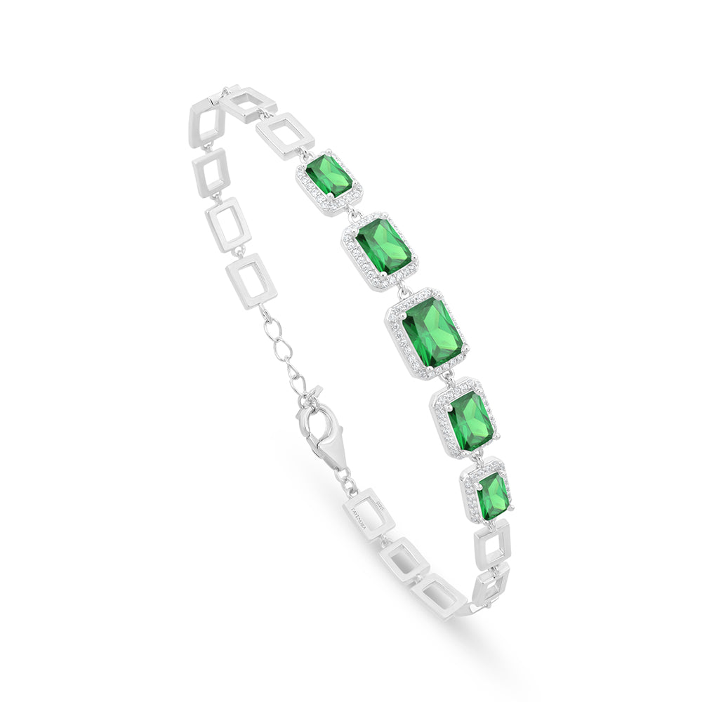 اسورة من الفضة الخالصة عيار 925 مطلية روديوم مرصعة زركون زمردي و فص ابيض