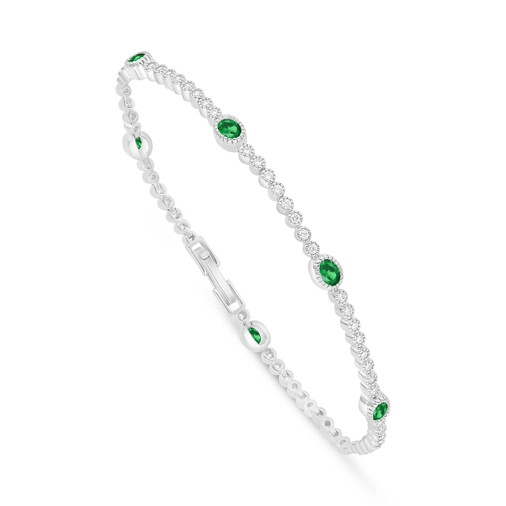 اسورة من الفضة الخالصة عيار 925 مطلي روديوم مرصع زركون زمردي و فص ابيض