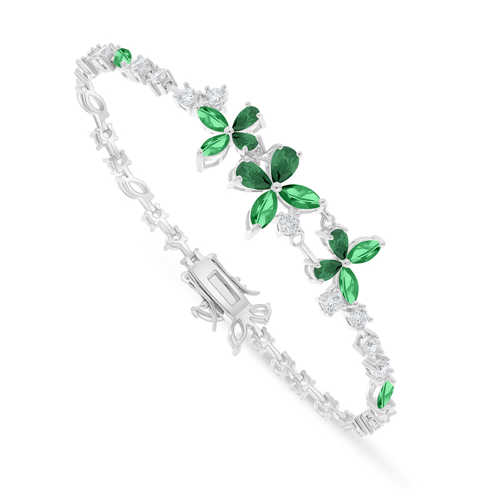 اسورة من الفضة الخالصة عيار 925 مطلية روديوم مرصعة زركون زمردي و فص ابيض