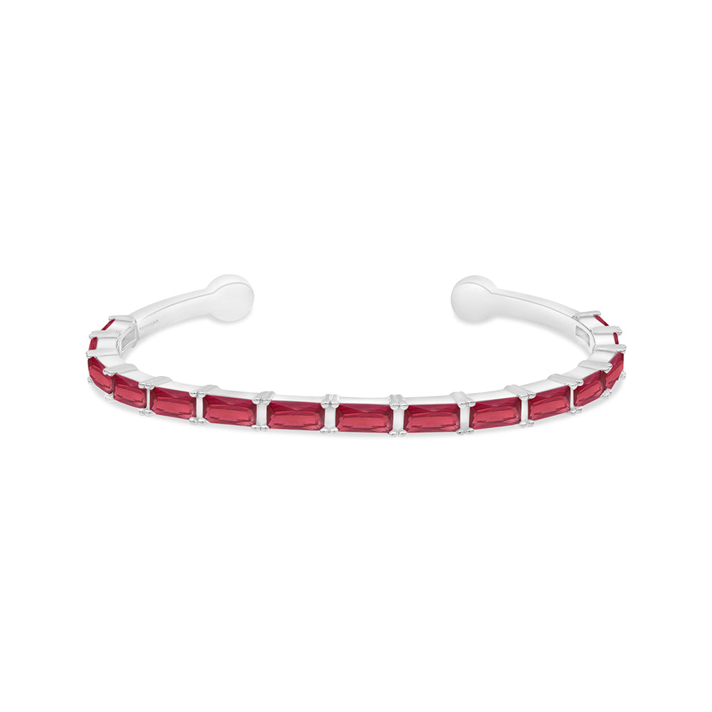 Total Weight: 10.4g عبّري عن جمالك مع أسوِرة فايندرا التي تتّسم بالبساطة ضمن مجموعة مجوهراتكِ. تأتي هذه الأسوِرة بتصميم مصنوع من الفضة الخالصة، مطلية بالروديوم لتحافظ على لمعانها لأطول فترة ممكنة، ومزيّنة بصفّ من أحجار الزركون الياقوت كورندوم بلونه الأحمر الدافئ، مقطوعة على شكل قصة باجيت ومتراصّة بدقة متناهية لتمنحكِ مزيدًا من اللمعان. ارتديها في كل الأوقات وأضيفيها إلى سلتك الآن!