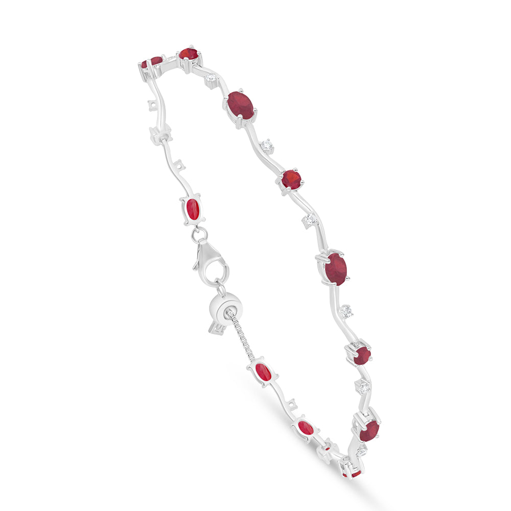 اسورة من الفضة الخالصة عيار 925 مطلية روديوم مرصعة ياقوت كروندوم و فص ابيض