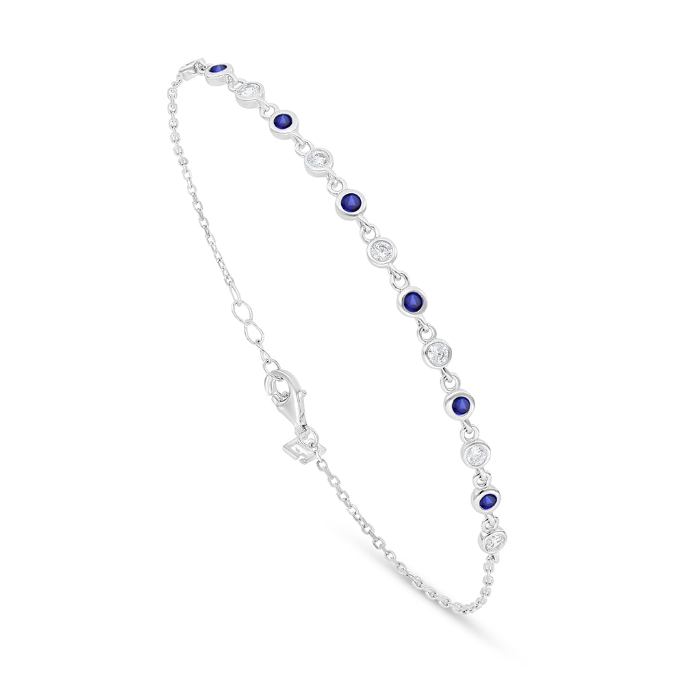 اسورة من الفضة الخالصة عيار 925 مطلية روديوم مرصعة زفير كروندوم و فص ابيض