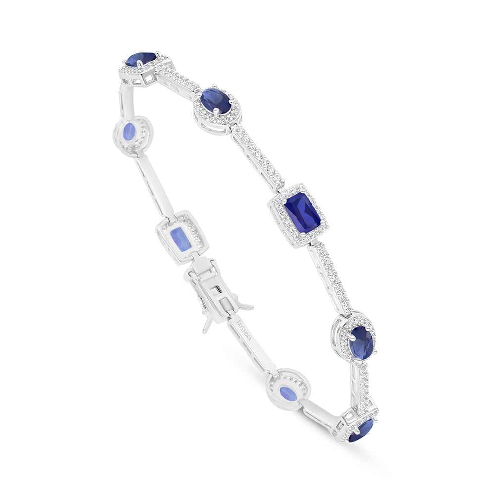 اسورة من الفضة الخالصة عيار 925 مطلية روديوم مرصعة زفير كروندوم و فص ابيض