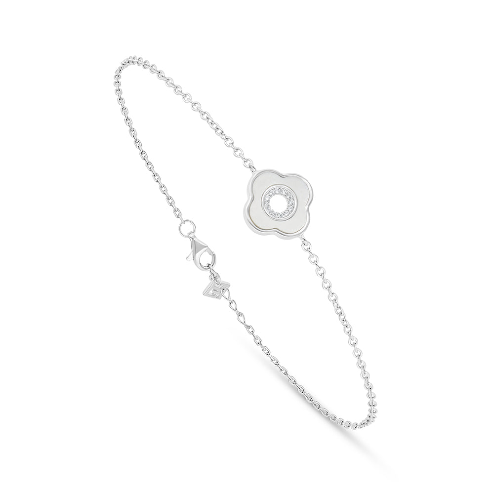 اسورة من الفضة الخالصة عيار 925 مطلي روديوم صدف ابيض و فص ابيض