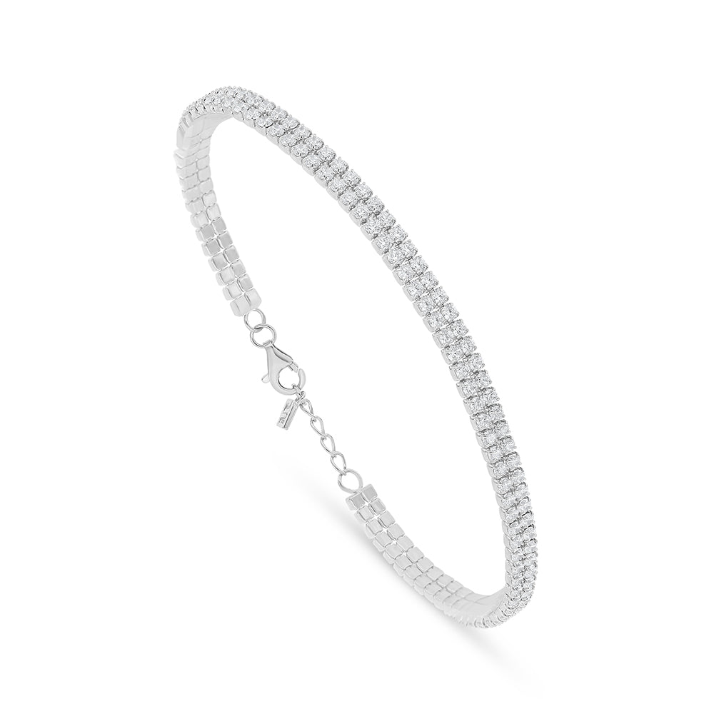 اسورة من الفضة الخالصة عيار 925 مطلية روديوم مرصعة فص ابيض