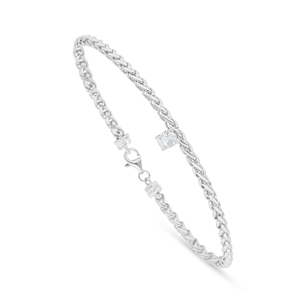 اسورة من الفضة الخالصة عيار 925 مطلية روديوم مرصعة فص ابيض