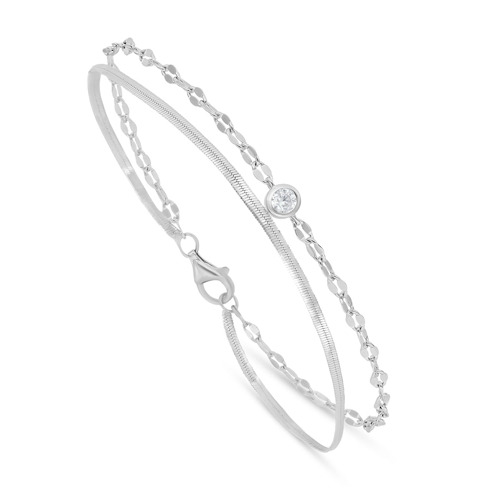 اسورة من الفضة الخالصة عيار 925 مطلية روديوم مرصعة فص ابيض