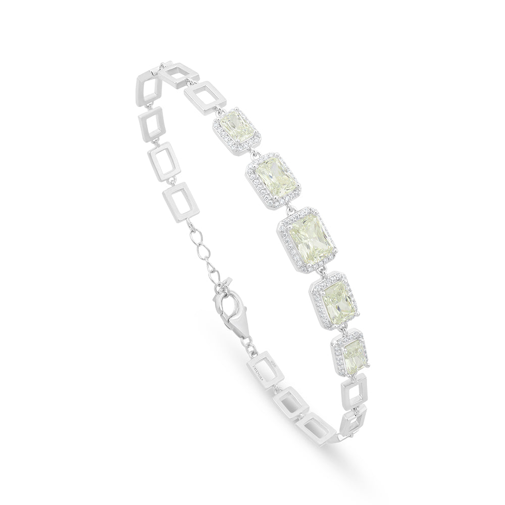 اسورة من الفضة الخالصة عيار 925 مطلية روديوم مرصعة بالزركون الكناري الالماسي و فص ابيض