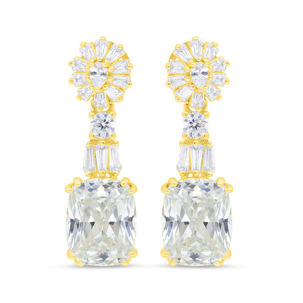 اقراط من الفضة الخالصة عيار 925 مطلي ذهبي مرصعة زركون اصفر و فص ابيض