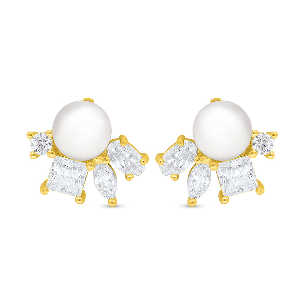 استحضري أنوثتك الكاملة مع هذه الأقراط المصممة بعناية فائقة، والمصاغة من الفضة الإسترلينية عيار 925 والمغطاة بطبقة من اللون الذهبي. تتألق الأقراط بأحجار زركون بيضاء لامعة بقصات متنوعة تشمل الماركيز، والأوفال، والبريليانت، والبرنسيس، لتضفي لمسة من التميّز والتنوع البصري. وفي الأعلى، تستقر لؤلؤة طبيعية فاتنة تنبض بالجمال والرقي. أنعمي بإطلالة كلاسيكية مترفة بالأناقة والضياء. وأضيفيها إلى مجموعتك الآن!