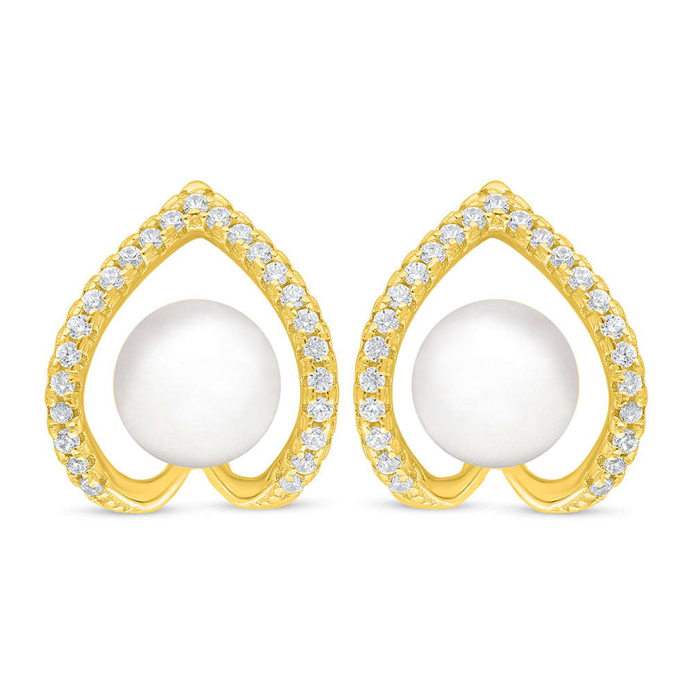 إن تفاصيل هذه الأقراط ستجعلها المفضّلة ضمن مجموعتكِ من المجوهرات! مصنوعة من الفضة الخالصة عيار 925، ومطلية بطبقة من اللون الذهبي الراقي. تأتي بتصميم إطار مفرّغ على شكل قلب رقيق مرصّع بأحجار الزركون الأبيض، ويتوسّطه لؤلؤ طبيعي بغاية الرقة. ارتديها لإطلالة أنيقة تُضفي على حضوركِ تميّزًا استثنائيًا في كل الأوقات. اقتنيها الآن!