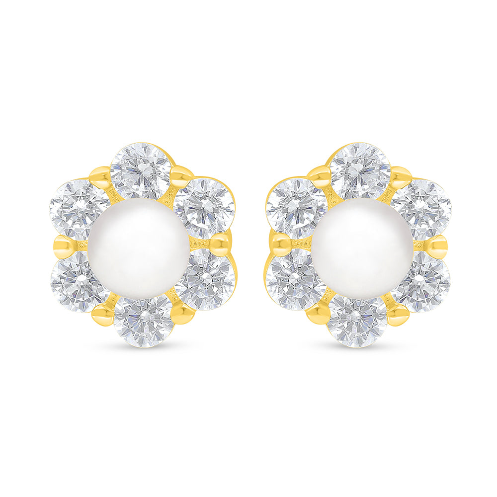 اقراط من الفضة الخالصة عيار 925 مطلية ذهبي مرصعة لولو ابيض طبيعي و فص ابيض