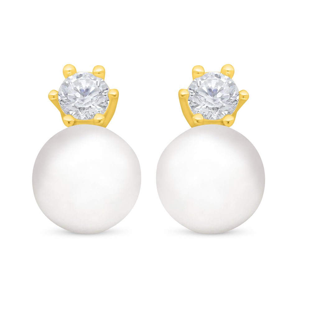 اقراط من الفضة الخالصة عيار 925 مطلية ذهبي مرصعة لولو ابيض طبيعي و فص ابيض