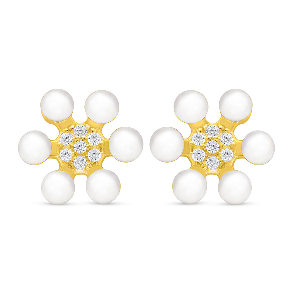 اقراط من الفضة الخالصة عيار 925 مطلية ذهبي مرصعة لولو ابيض طبيعي و فص ابيض