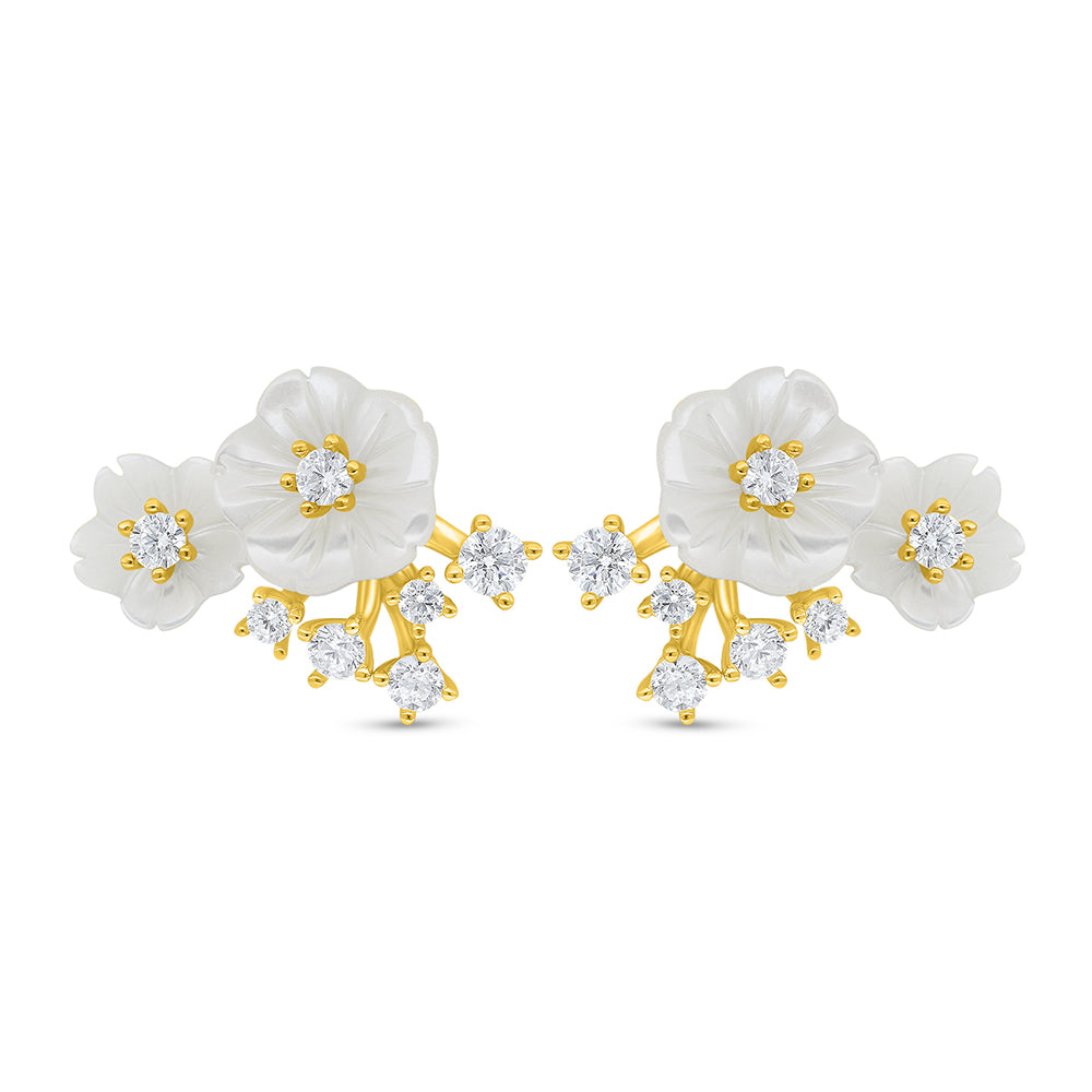 اقراط من الفضة الخالصة عيار 925 مطلية ذهبي مرصعة صدف ابيض و فص ابيض