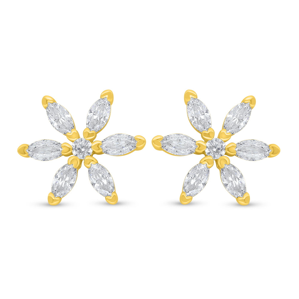 اقراط من الفضة الخالصة عيار 925 مطلي ذهبي مرصع فص ابيض
