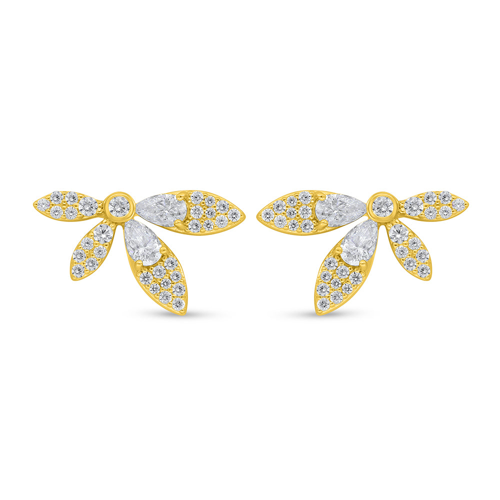 اقراط من الفضة الخالصة عيار 925 مطلي ذهبي مرصع فص ابيض