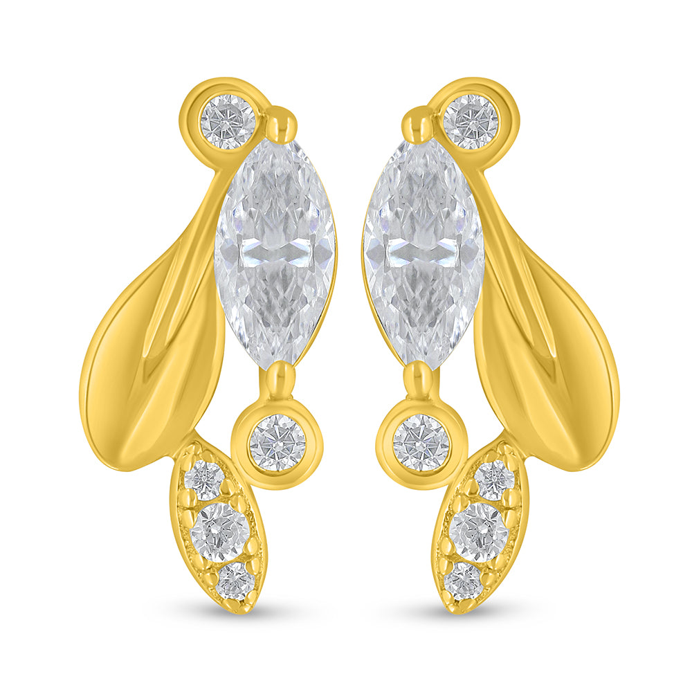 اقراط من الفضة الخالصة عيار 925 مطلي ذهبي مرصع فص ابيض