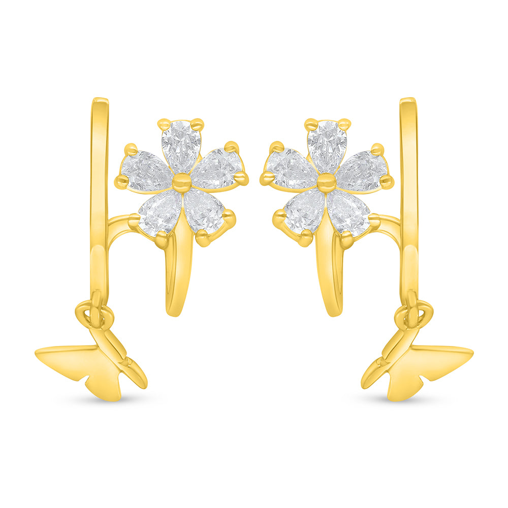 اقراط من الفضة الخالصة عيار 925 مطلي ذهبي مرصع فص ابيض