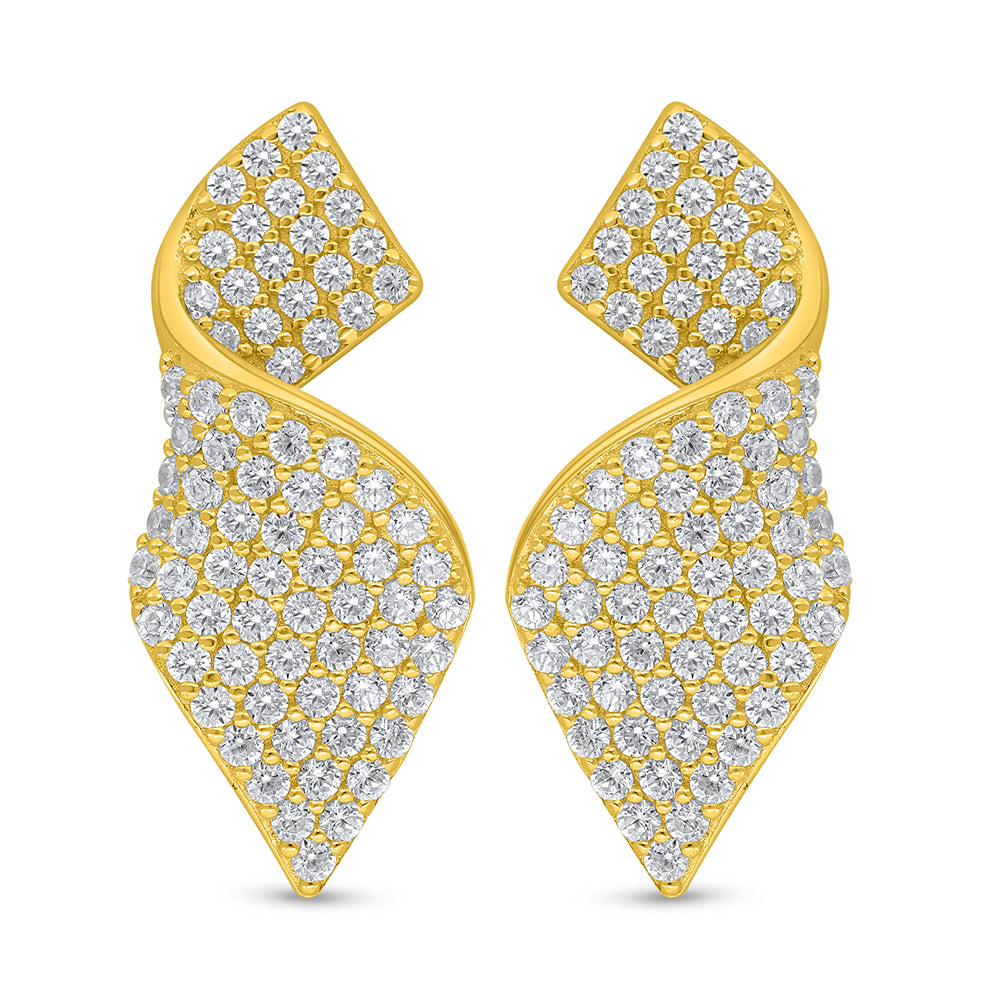 اقراط من الفضة الخالصة عيار 925 مطلي ذهبي مرصع فص ابيض