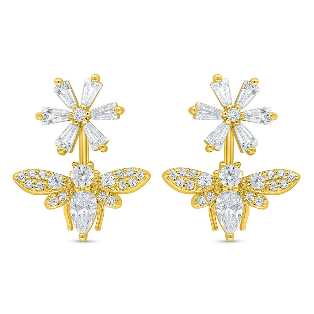 اقراط من الفضة الخالصة عيار 925 مطلية ذهبي مرصعة فص ابيض