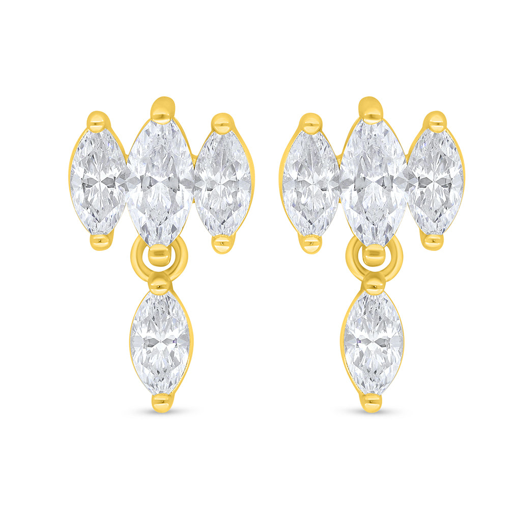 اقراط من الفضة الخالصة عيار 925 مطلية ذهبي مرصعة فص ابيض