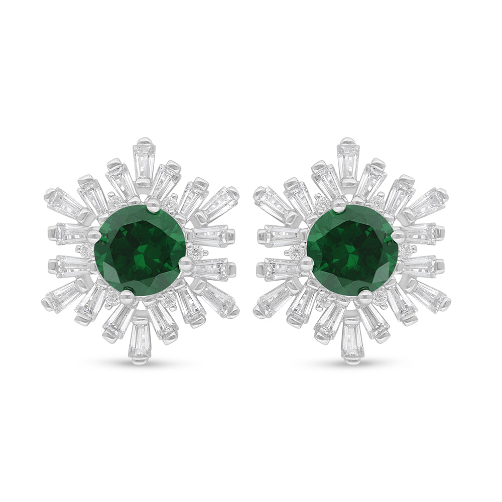 اقراط من الفضة الخالصة عيار 925 مطلي روديوم مرصع زركون زمردي و فص ابيض