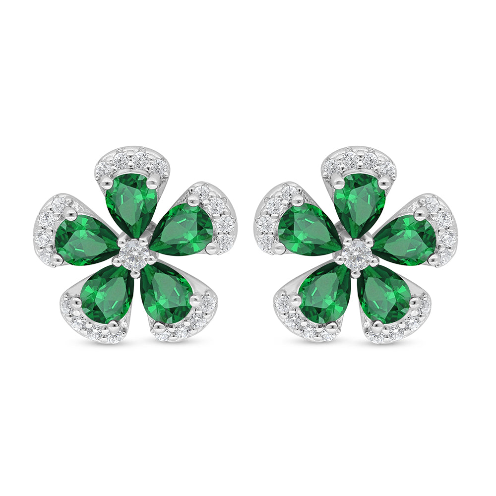 اقراط من الفضة الخالصة عيار 925 مطلية روديوم مرصعة زركون زمردي و فص ابيض