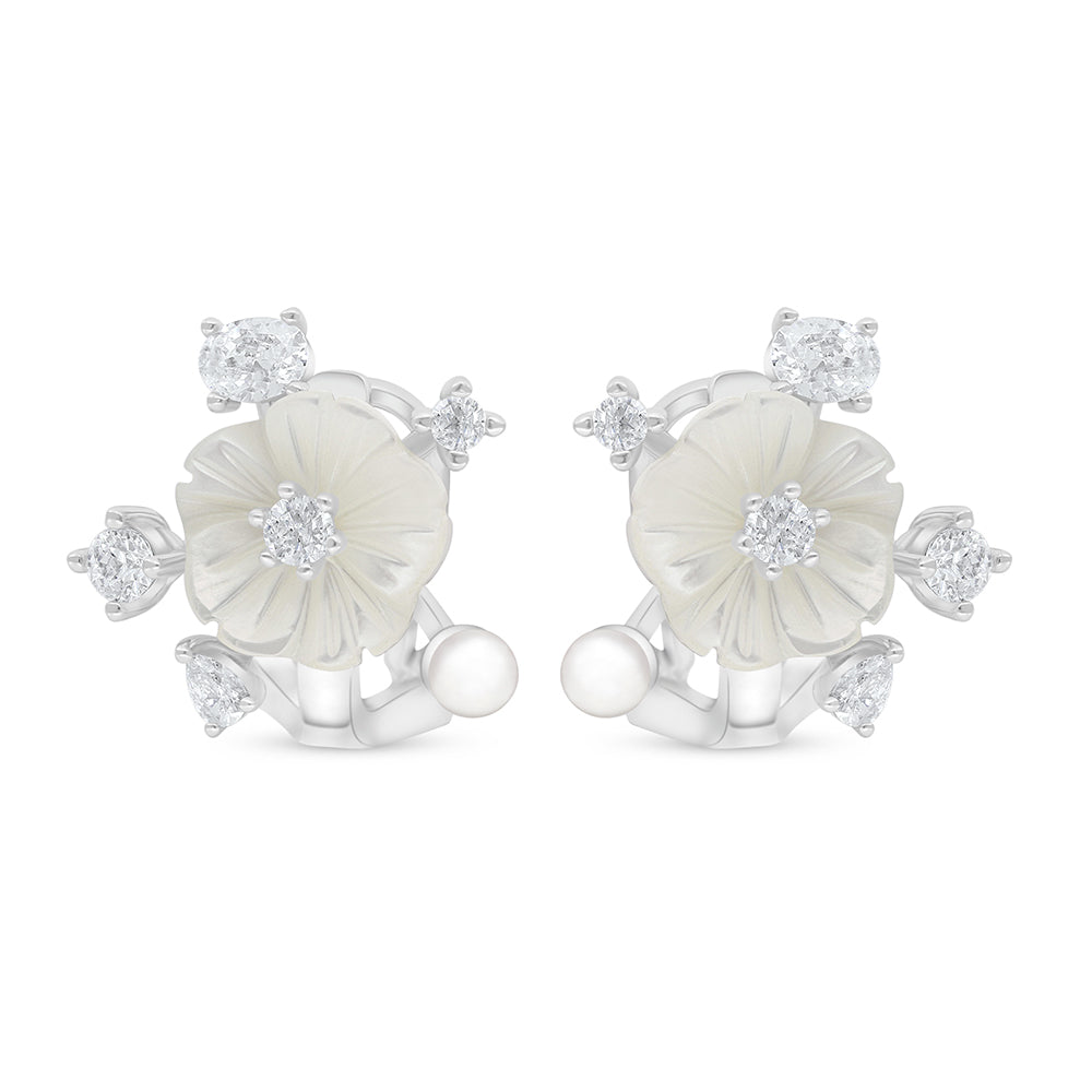 اقراط من الفضة الخالصة عيار 925 مطلية روديوم مرصعة لولو ابيض طبيعي و صدف ابيض