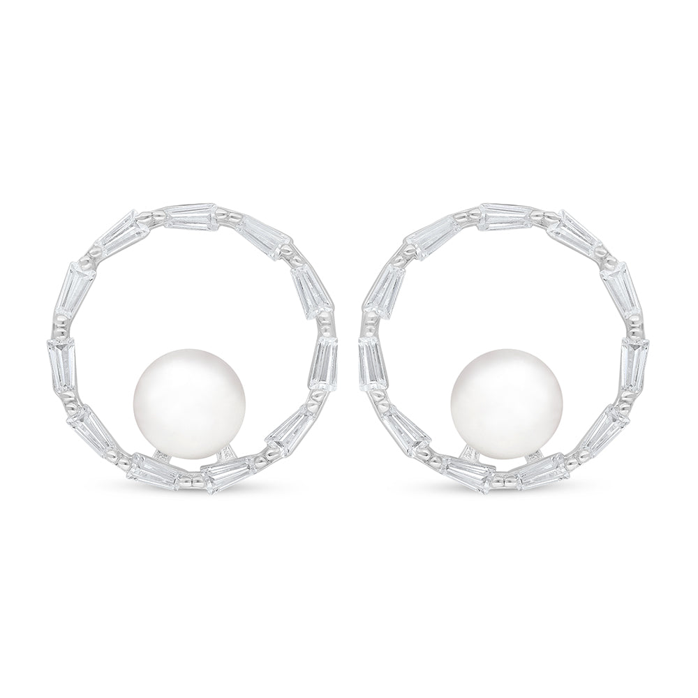 اقراط من الفضة الخالصة عيار 925 مطلية روديوم مرصعة لولو ابيض طبيعي و صدف ابيض