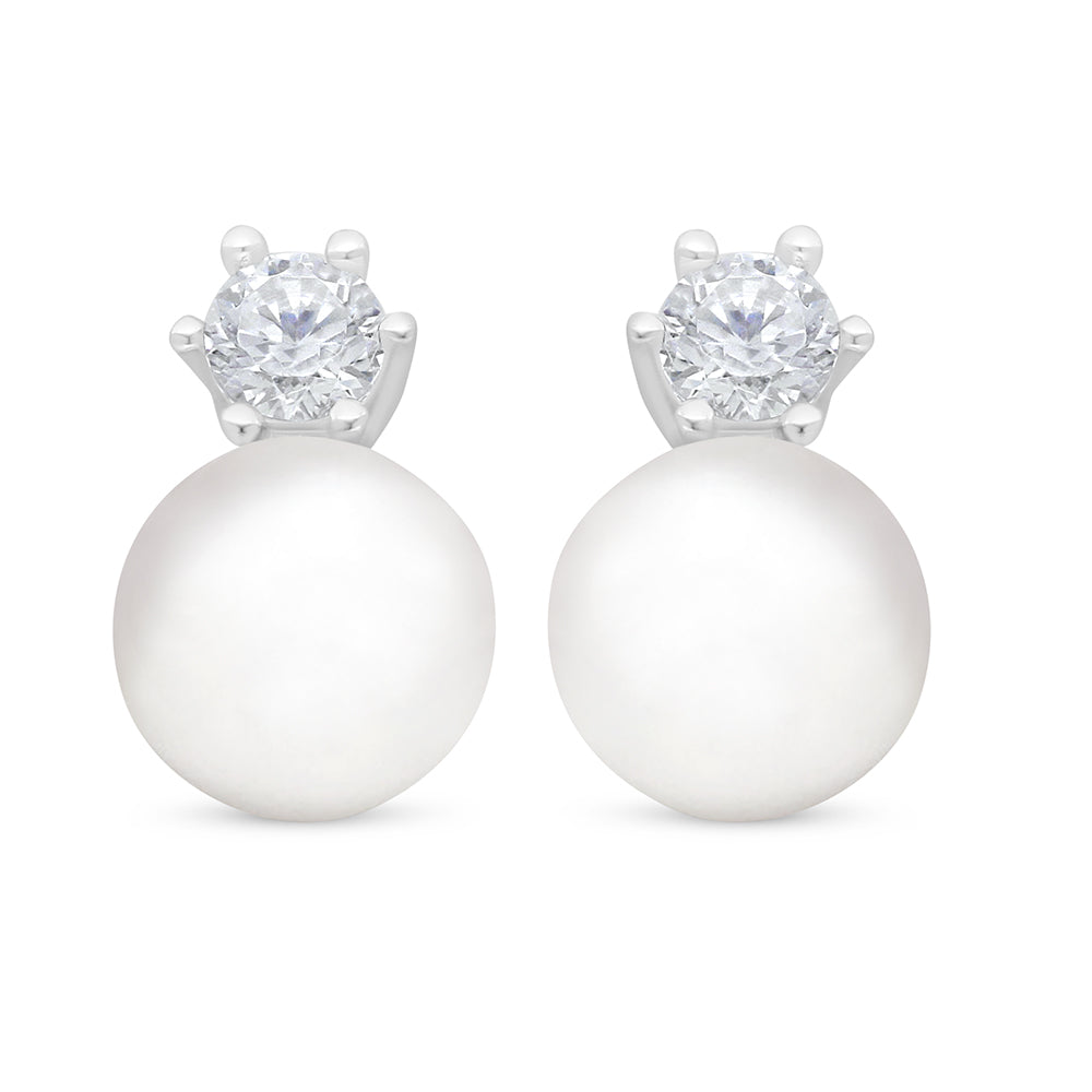 اقراط من الفضة الخالصة عيار 925 مطلية روديوم مرصعة لولو ابيض طبيعي و فص ابيض