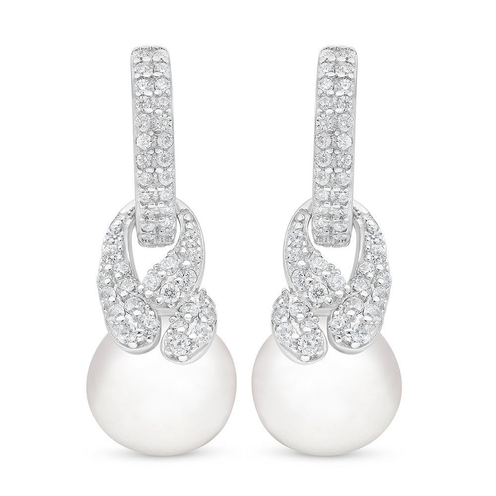 اقراط من الفضة الخالصة عيار 925 مطلية روديوم مرصعة لولو ابيض طبيعي و فص ابيض