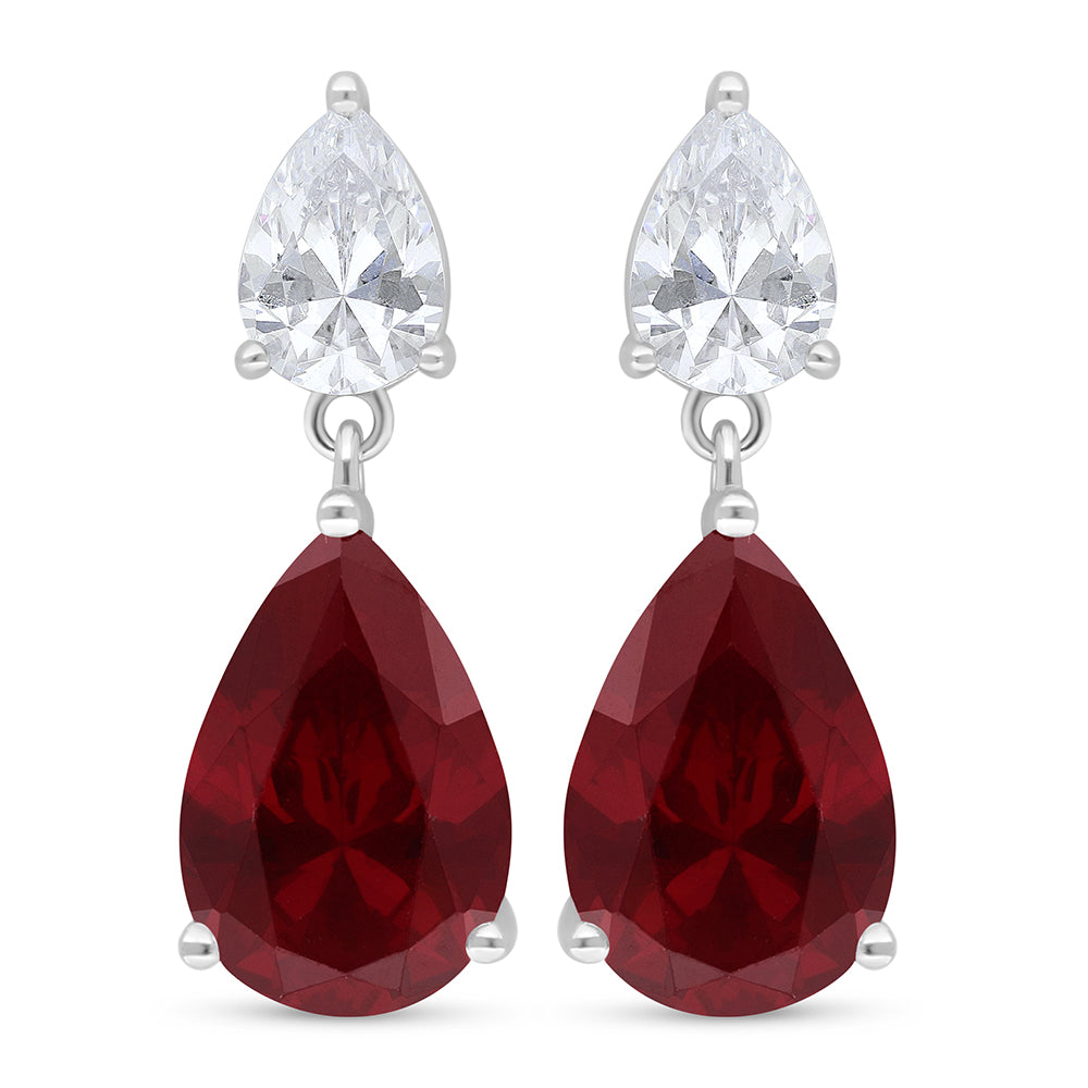اقراط من الفضة الخالصة عيار 925 مطلية روديوم مرصعة ياقوت كروندوم و فص ابيض