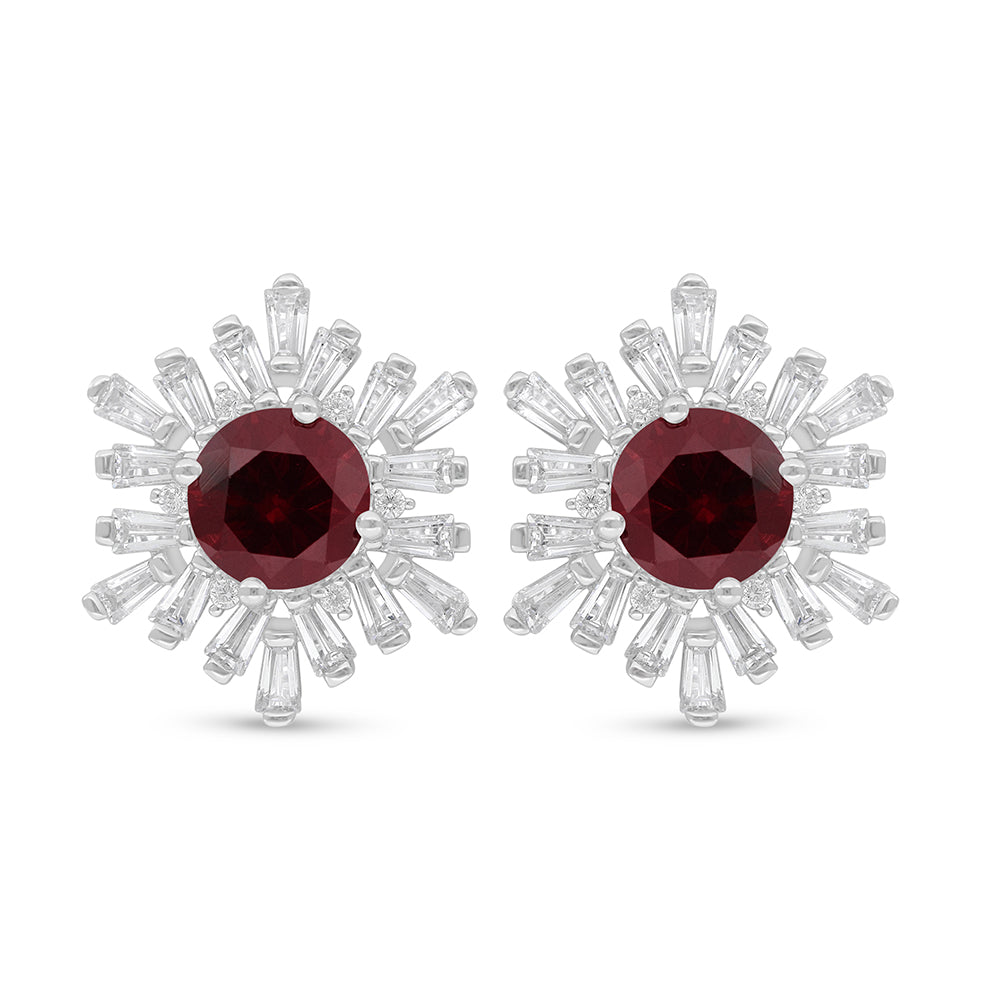 اقراط من الفضة الخالصة عيار 925 مطلي روديوم مرصع ياقوت كروندوم و فص ابيض